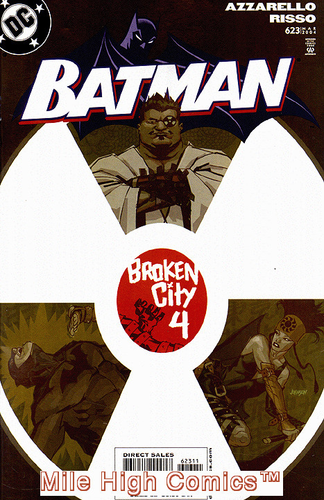 Please note: this is only one of the many thousands of back issue comics, magazines, comics trade paperbacks, and comics hardback collections that we list for sale on Hip. We stock over eight million comics and books in our Denver warehouse, and our gigantic 35,000 square foot Central Denver Mega-Store. Please enjoy shopping! In addition to our low prices, you can also combine an unlimited number of comics (up to 20 comics) and books into a single order for only a $6.95 shipping charge for delivery anywhere in the USA, and $25.00 shipping on most International orders. An important note: the cover photo of the item shown in this listing, is not a scan of the actual item. We sell well over one million back issue comics a year, and thus have a huge library of past scans that we utilize to illustrate the books that we are offering on Hip. Below we have listed a very detailed written description of our grading standards for this particular book. If the issue that we send you fails to meet any part of our grading criteria, we'll arrange for a full refund. The final bit of information that you need to know about us is that our Hip warehouse is closed on the weekends and holidays. We generally ship all our Hip orders Monday-Friday, and with the exception of orders arriving on Friday, we generally can ship Hip orders within 48 hours. Happy Collecting! Chuck Rozanski, President - Mile High Comics, Inc. BATMAN (Series Began 1940) (DC) Issue #623 comics in Good condition. Published by DC Comics .Good - A copy in this grade has all pages and covers, although there may be small pieces missing inside; the largest piece allowed from front or back cover is a 1/2 inch triangle or a square 1/2 inch by 1/2 inch. Books in this grade, are commonly creased, scuffed, abraded and soiled, but completely readable. Often paper quality is low but not brittle. Cover reflectivity is low and in some cases completely absent. Most collectors consider this the lowest collectible grade because comic books in lesser condition are usually incomplete and/or brittle. This grade can have a moderate accumulation of defects but still maintains its basic structural integrity.BATMAN #623Written by Brian Azzarello; Art by Eduardo Risso; Cover by Dave JohnsonPart 4 of the 6-part "Broken City" by the creative team of 100 BULLETS. The mystery surrounding the killer of a boy's parents deepens as Batman viciously tears into the stoolies and criminals of Gotham City for answers. But the bad guys have two bombs of their own to drop on the Dark Knight: Little Boy and Fat Man, two destructive new villains who've already proven they're tougher than Gotham's guardian. FC, 32 PG.We list over 200,000 items in our Hip Store. Shipping costs apply only to the first item. All additional items in the same order ship for free!The image in this listing is from a random copy of this product that we have had in stock recently. It probably will not be the item we send you, nor even representative of the grade of this item, but is meant to help you determine if this is the item you want.Seller Information