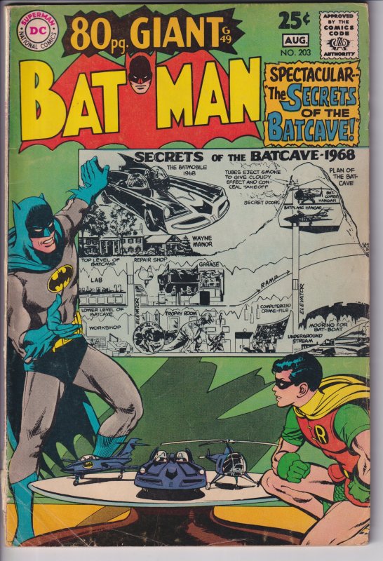 BATMAN #203 (Aug 1968) VG- 3.5 light yllg to white. Eighty page giant!