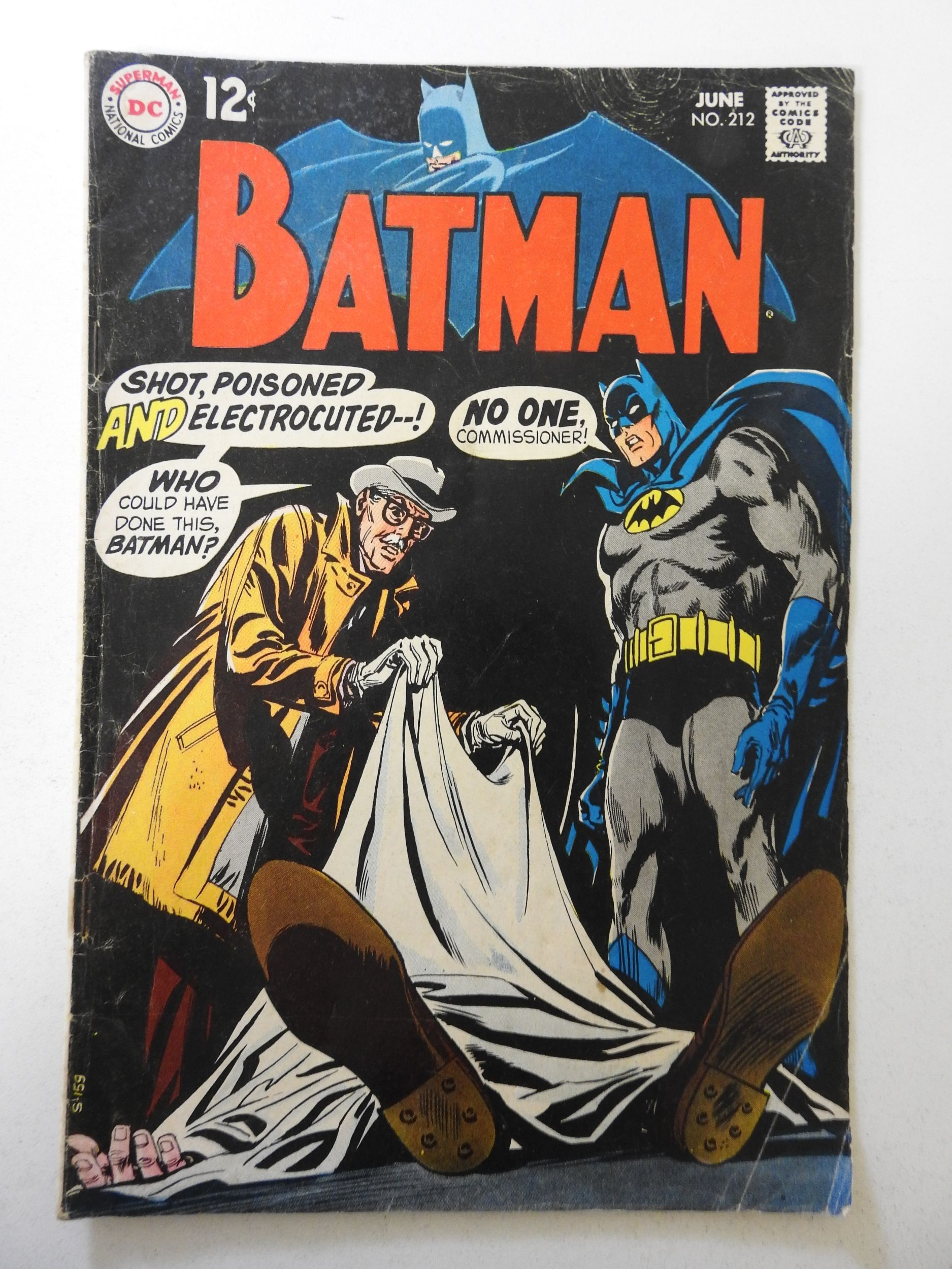 Batman #212 (1969) VG Condition moisture stain, rust bottom staple