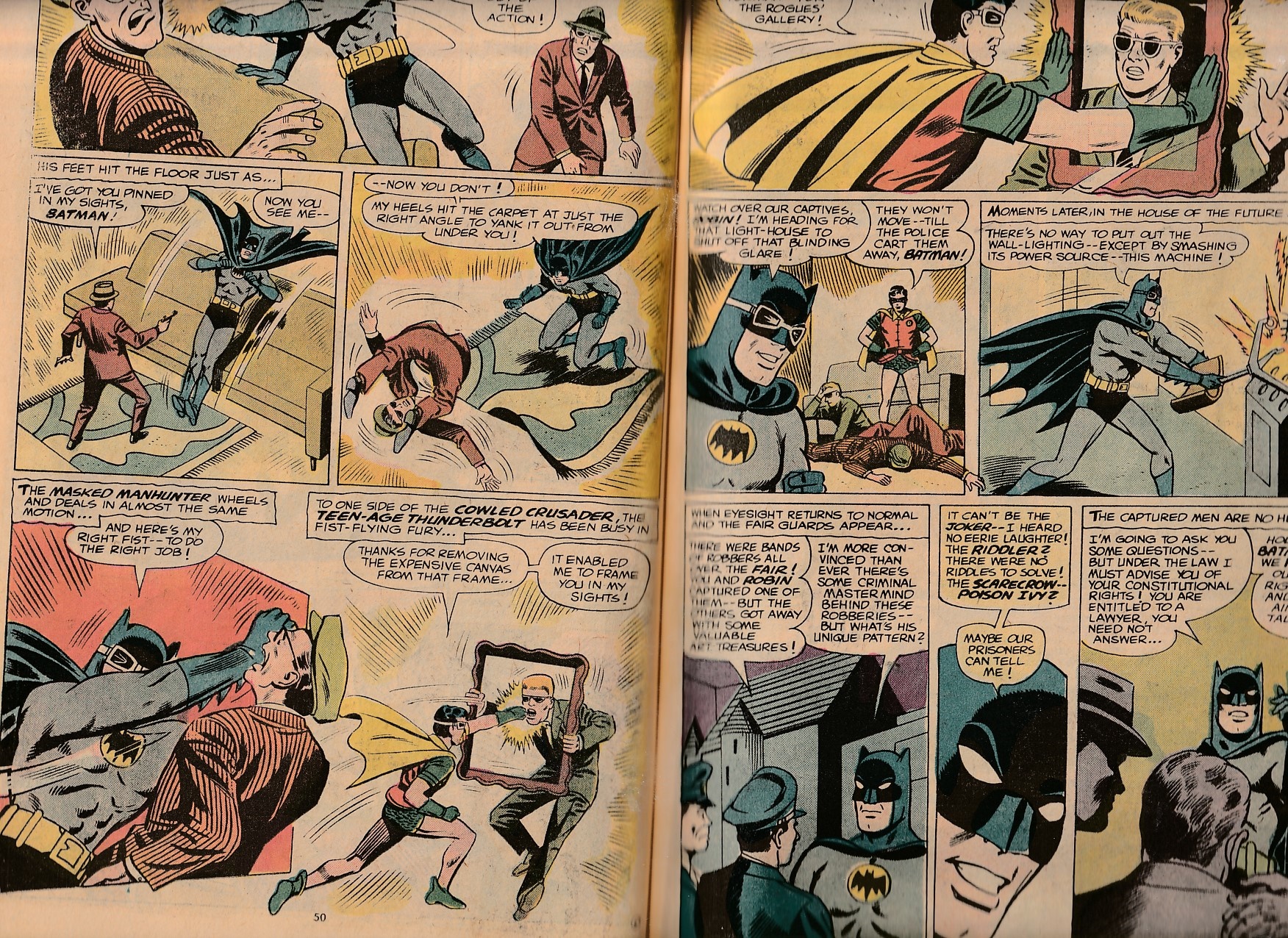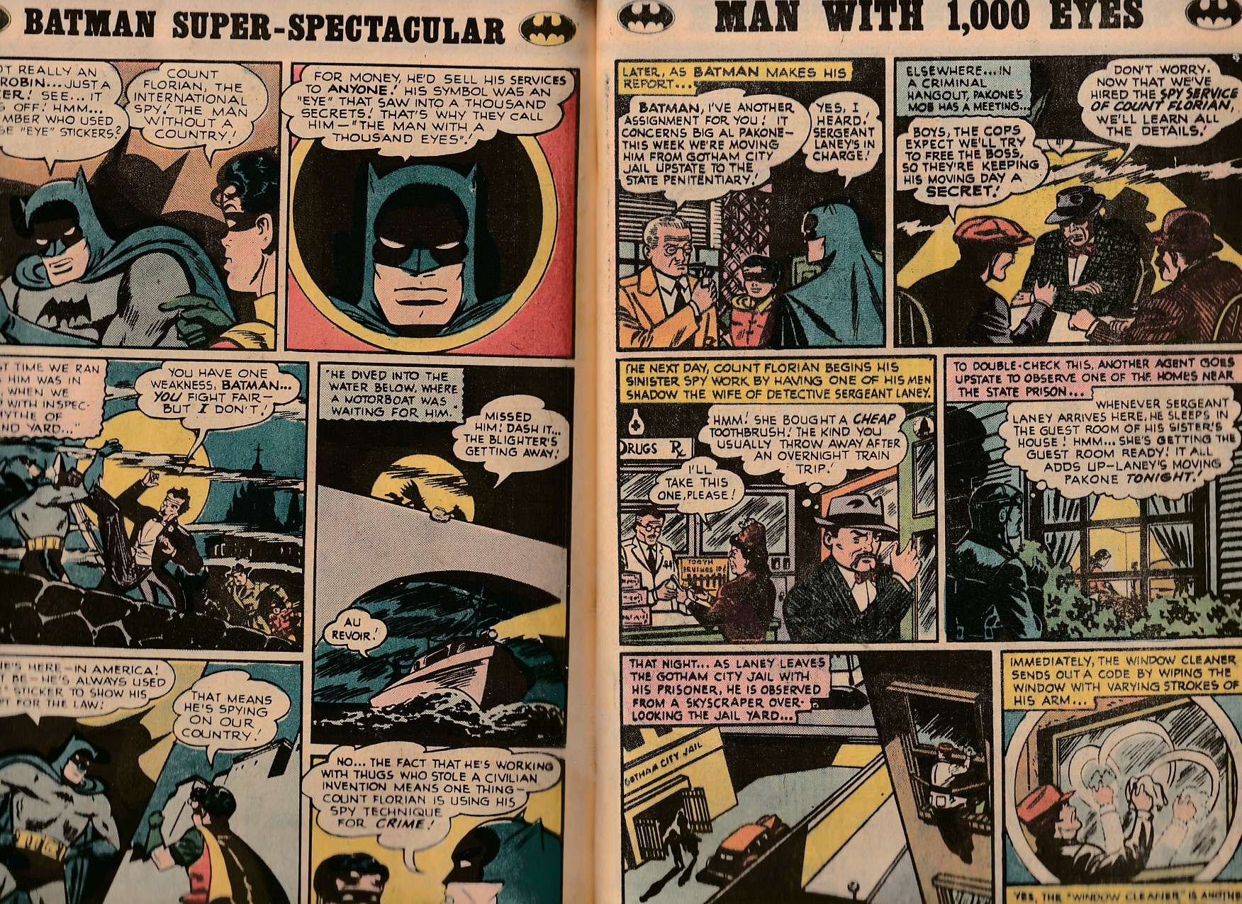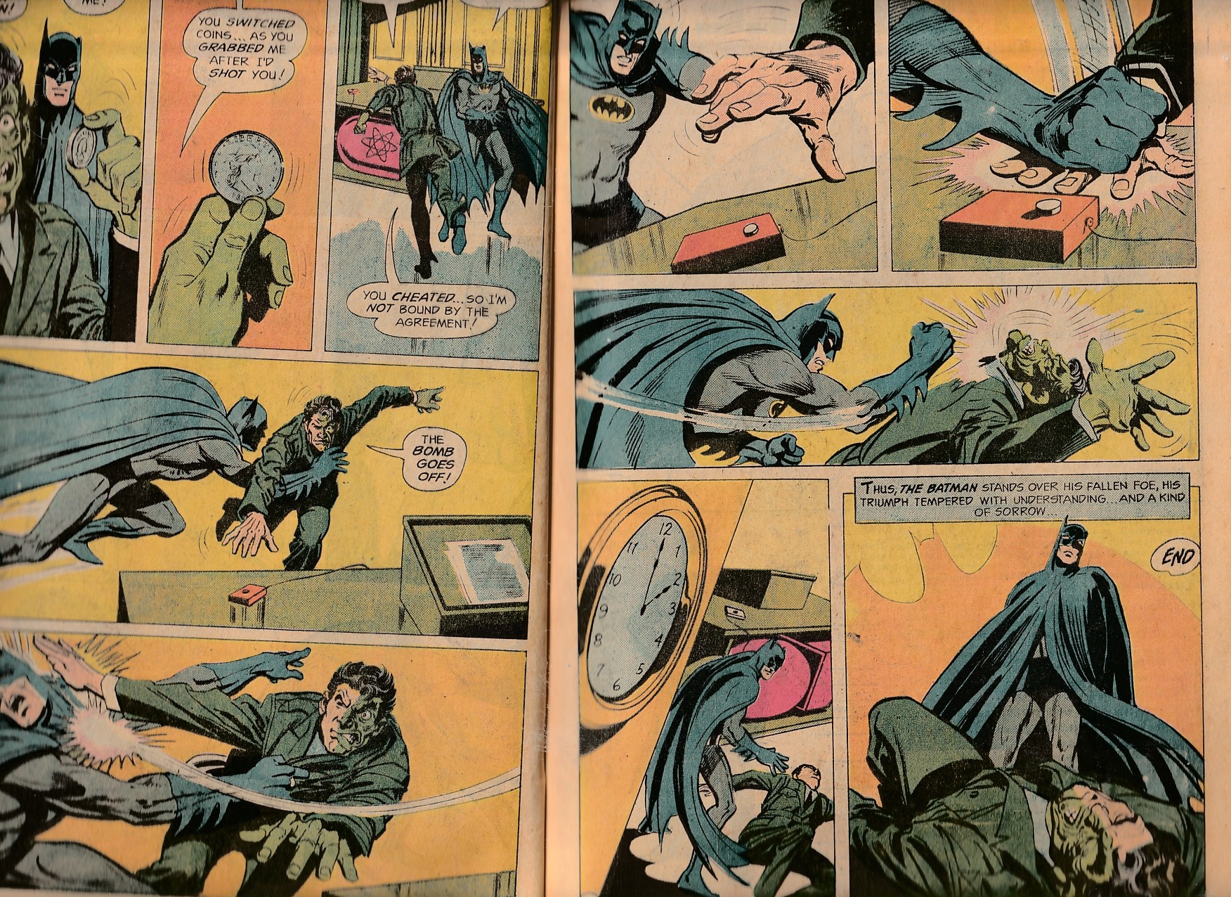 44 years ago, before dc comics made a deal with walmart to publish 100 page comic books, dc was releasing 100 page spectaculars ! One of the titles that benefitted was batman ! This issue presented six stories with the theme of numbers including a new two face story, three thugs acting like the three musketeers, the 1st appearance of the cavalier and his twenty ton whale robbery, 7 wonder crimes, a planned heist at an exhibit of the world’s 100 tourist attractions, and a villain claiming to have 1000 eyes that allow him to learn any secret. Featured writers are dennis o’neil, gardner fox, and bill finger. Featured artists are irv novick, dick giordano, dick sprang, and batman creator, bob kane