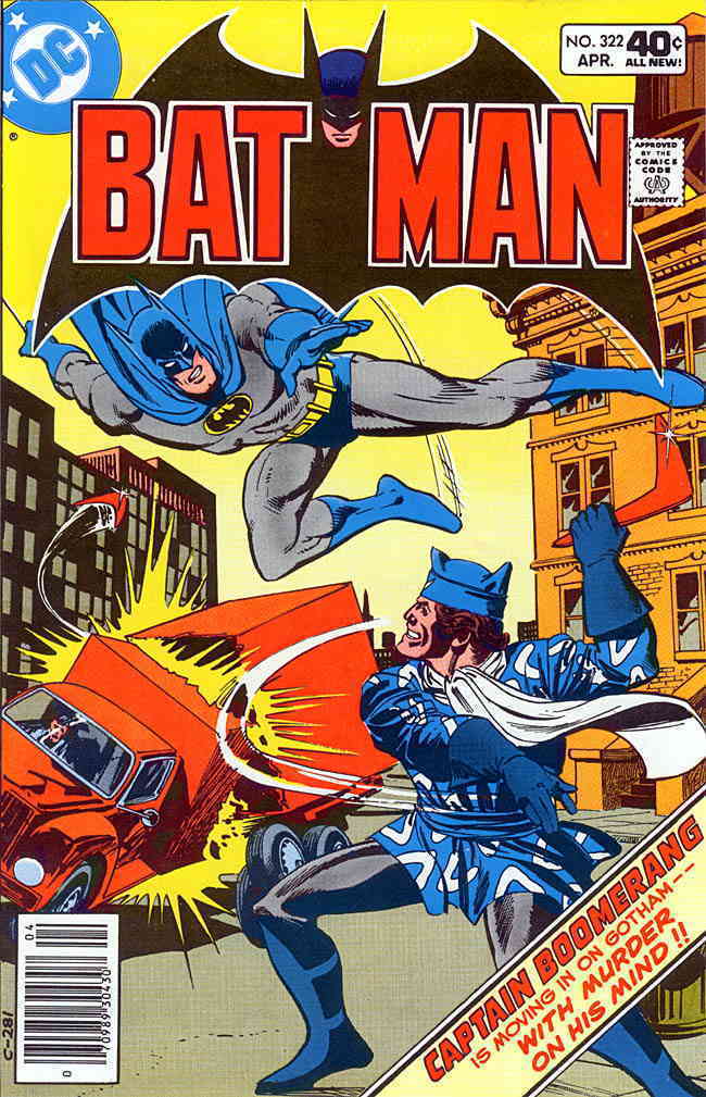 Item: Batman #322 Publisher: DC Cover Date: April 1980 Writer: Len Wein Artist: Irv Novick Cover Artist: Dick Giordano APPEARANCES: Captain Boomerang (Digger Harkness), Catwoman (Selina Kyle), Batman (Bruce Wa ... Read More
