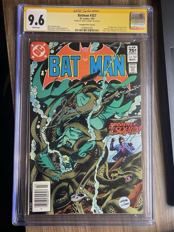 Grade: 9.6 Near Mint+Batman #357 CGC 9.6 Canadian SS Signed Gerry Conway 1st Killer Croc Jason ToddComic books will ship between two pieces of cardboard, with bubble wrap, in a Priority Mail box. We do combine shipping, please ask before you pay.