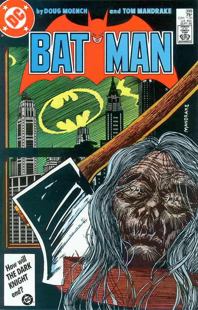Item: Batman #399 | Publisher: DC | Cover Date: September 1986 | Writer: Doug Moench | Artist: Tom Mandrake | Cover Artist: Tom Mandrake | Appearances: Robin II (Jason Todd), Catwoman | Storylines: Strike Two! | Notes: UPC box displays “How will the Dark Knight End?” | With Economy shipping, each additional comic ships for just 50 cents more to customers in the USA. This listing contains a stock photo and information from ComicBase™ and © Human Computing. The stock photo is for reference only. If you would like to see a photo of the actual item, please message us prior to purchasing.Seller Information