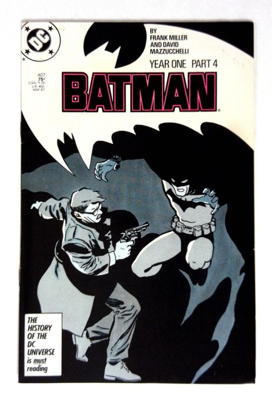 Batman #407 (1987) VF/NM Batman DC Batman Iconic cover featuring Batman looming over a criminal as Commissioner Gordon fires his weapon. This issue concludes the 'Year One' storyline by Frank Miller and David Mazzuc ... Read More