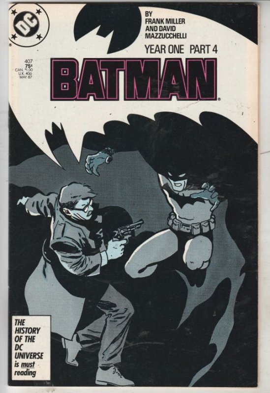 Batman #407 - Year One Part 4 ARTIST - Frank Miller CONTENT - Batman Year One Finale! From the one-owner high-grade C'ville collection from Charlottesville, Virginia! It comes with a certificate of authenticity fr ... Read More