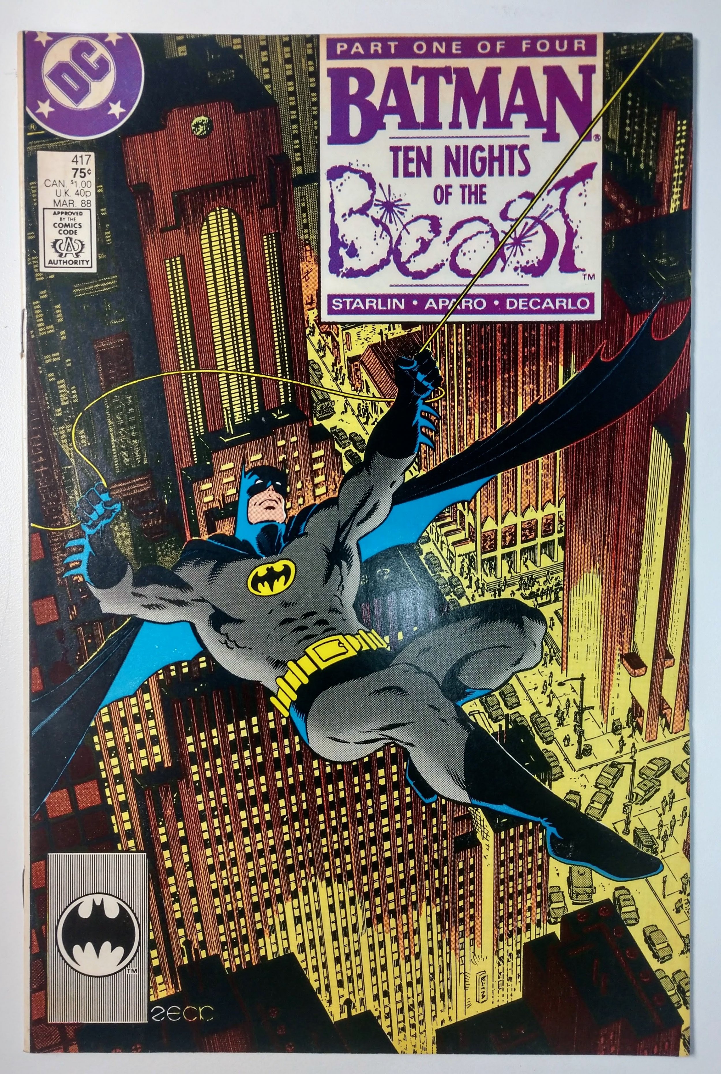 Batman #417 (7.0, 1988) 1ST APP KGBEAST. Our grading standards are based on the Overstreet Grading Guide with additional experience gained from our 20+ years in the comic industry. We are not professional graders an ... Read More