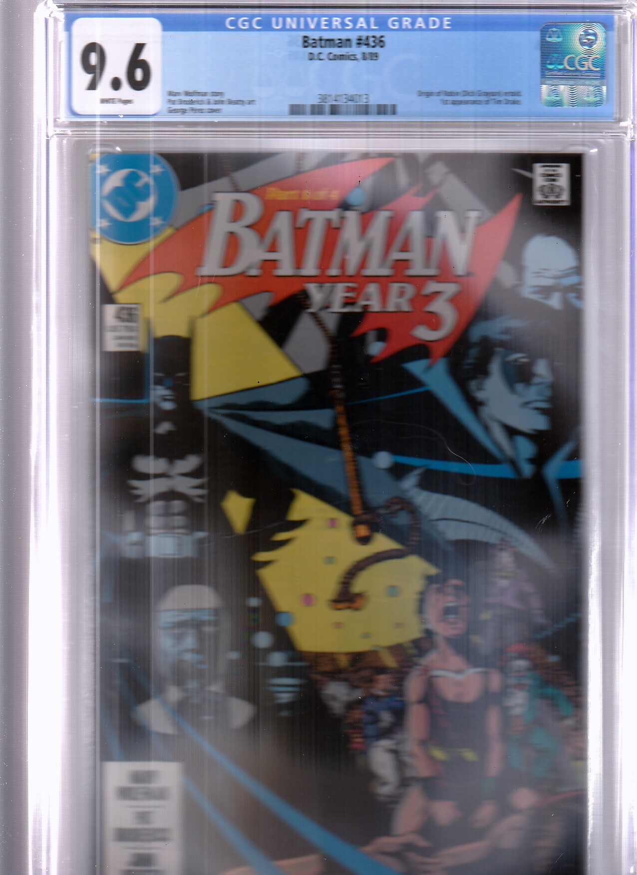 Batman(vol. 1) # 436 CGC 9.6Batman Year 3 focuses on the transformation of Dick Grayson into Robin ! Story by New Teen Titans/Crisis on Infinite Earths writer Marv Wolfman with art by Lebion of Super Heroes/Firestorm artist Pat Broderick