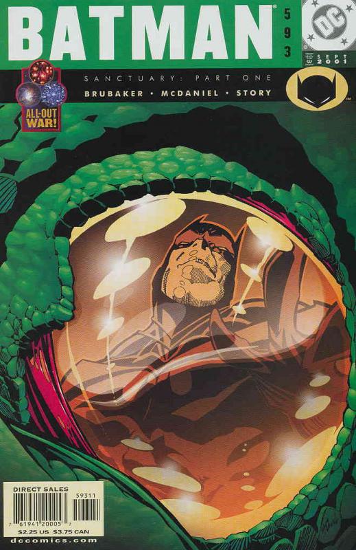 Item: Batman #593 | Publisher: DC | Cover Date: September 2001 | Writer: Ed Brubaker | Artist: Scott McDaniel | Cover Artist: Scott McDaniel | Storylines: Sanctuary, Part 1 | Notes: Our Worlds At War | With Economy ... Read More