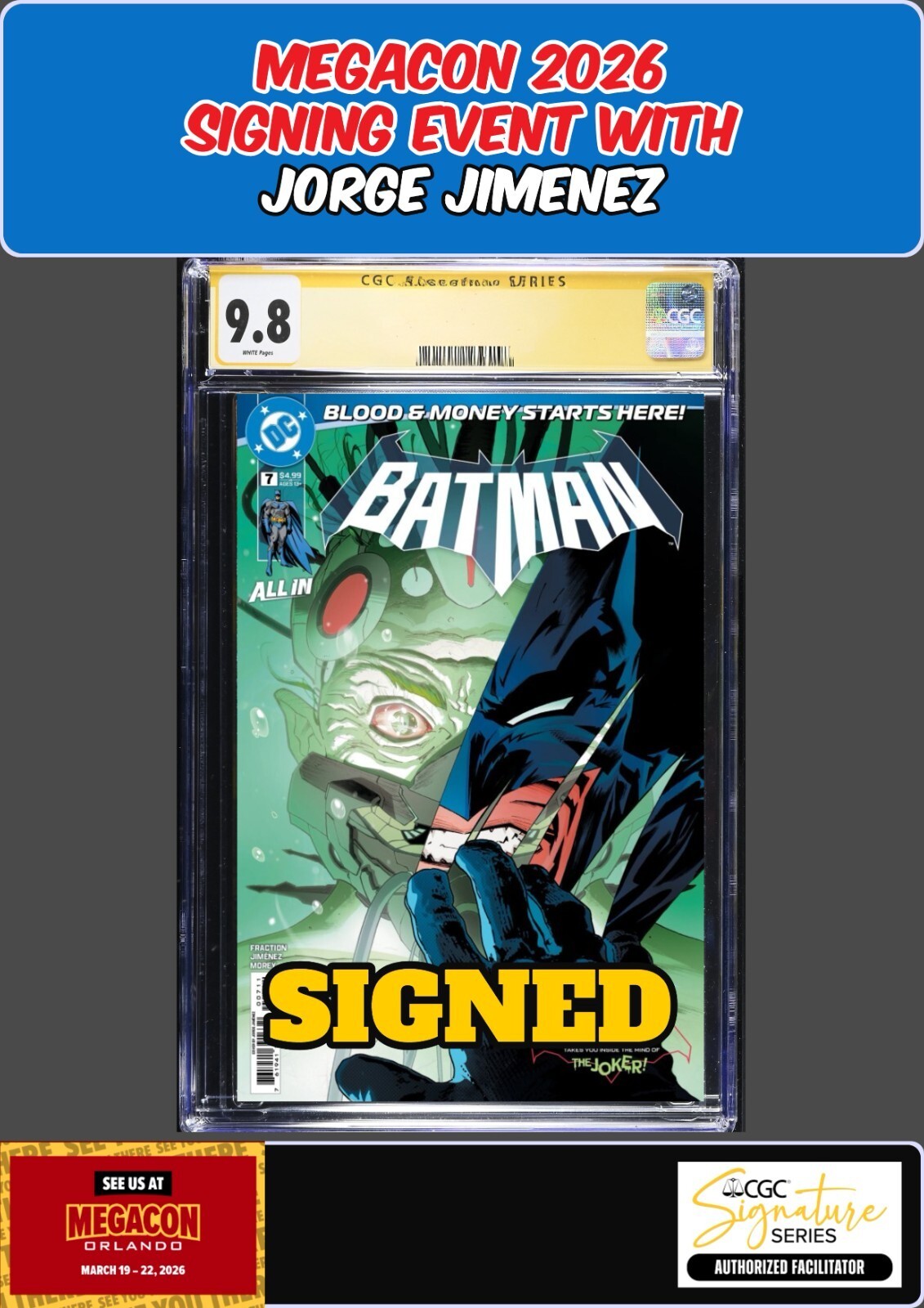 BATMAN #7 DC 2026 CGC SS 9.8 JORGE JIMENEZ SIGNED MEGACON PRESALE