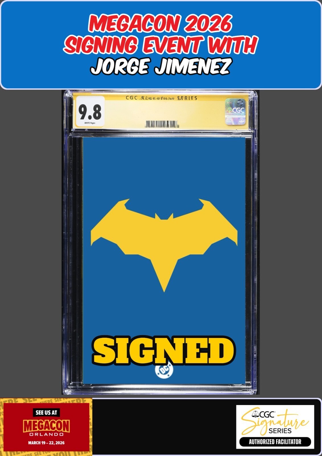 BATMAN #7 SYMBOL VARIANT DC 2026 CGC SS 9.8 JORGE JIMENEZ SIGNED MEGACON PRESALE