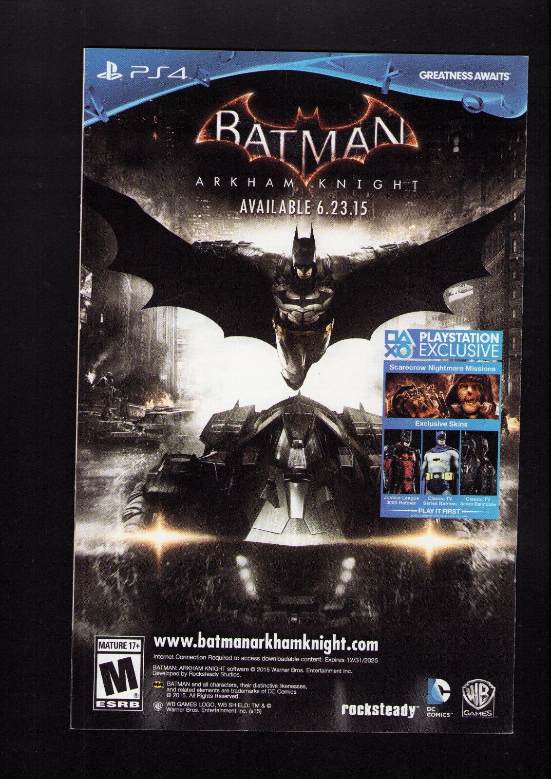 Grade: 9.0 Very Fine/Near MintBatman Beyond #1 - SIGNED BY DAN JURGENS! (9.0) 2015Size: 7" x 10"This item was uploaded by ___AG___.WE COMBINE SHIPPING!!! Either wait for us to send you an invoice after you commit to buy or, if it makes you pay right away, message us back and we'll refund the excess charge. Buy as many single comic books as you want for one low flat shipping rate in the United States! International will be charged exact according to size and weight. If you have any specific questions or requests, please ask us prior to ordering and we'll get back to you as soon as we can. If there are any problems with your order whatsoever, please message us before leaving feedback and we'll be happy to work with you to fix the situation! We ship worldwide, combine purchases, and charge exact shipping. The price may vary based on size, weight, and location. If you are automatically overcharged for shipping, message us and we'll be happy to revise the invoice or refund you the excess amount. If you have any questions regarding shipping, please message us. International Buyers - Please Note: Import duties, taxes, and charges are not included in the item price or shipping cost. These charges are the buyer's responsibility. Please check with your country's customs office to determine what these additional costs will be prior to bidding or buying. Payment can be made by PayPal and credit cards directly. 120,000+ items in total in my Hip store! Frequently Asked Questions: When are your operation hours?Our in office hours are Monday - Friday, 11 am - 8 pm. We are not open on weekends, so if you send us a request on Friday evening we won't get back to you until Monday afternoon. Please don't take it as us ignoring you! We will work on your request Monday and get back to you as soon as we can. Also, if you order from us on a Friday evening or Saturday morning we won't start processing your order until we open on Monday. That means on Monday it will be pulled and prepped for shipping, then picked up by the postman on Tuesday morning.When will you ship my item? The tracking hasn't moved.We realize you're eager to get your item, so if the tracking hasn't moved in a few days please don't be concerned. We give the postman a lot of packages daily, sometimes as many as 100, so he does not scan each item for us upon pickup as he says it would be too time consuming for him to do so. If you get a tracking number from us, that almost always means your item was picked up by the postman the next business day. The USPS is also imperfect. There are times when the tracking won't even show movement until it's in your area's regional distribution center. This is normal in our experience. Is the item pictured the exact one for sale?Yes! We don't use stock images and go through great lengths to scan or photograph everything we list. The item pictured is exactly what you should receive UNLESS it is a fixed price listing with multiple items available. Can you issue a COA? We can, upon request. Please make sure you leave us a note while checking out and shoot us a message immediately after requesting one, just to be sure. How do you grade?Grading is very subjective, but we are professionals with decades of grading experience between us who try the best we can to accurately describe the condition of the items we list. Anthony is an Overstreet Comic Book Price Guide Advisor Please see the grading chart below for a breakdown of how we grade: NOTE: We don't grade any raw books higher than 9.2, as once you go higher than that grading gets really subjective. If you buy a NM book from us, it may very well be higher than 9.2 but we play it safe and grade conservatively. 9.2 NM Near Mint 9.0 VF/NM Very Fine/Near Mint 8.5 VF+ Very Fine+ 8.0 VF Very Fine 7.5 VF- Very Fine- 7.0 FN/VF Fine/Very Fine 6.5 FN+ Fine+ 6.0 FN Fine 5.5 FN- Fine- 5.0 VG/FN Very Good/Fine 4.5 VG+ Very Good+ 4.0 VG Very Good 3.5 VG- Very Good- 3.0 GD/VG Good/Very Good 2.5 GD+ Good+ 2.0 GD Good 1.8 GD- Good- 1.5 FR/GD Fair/Good 1.0 FR Fair 0.5 PR PoorHow do you ship comics? We ship in rigid cardboard mailers to protect your comic book from the worst the mail system has to offer. Price varies based on the number of books you purchase, but we try to keep costs as low as we can and charge exact shipping. If it looks unusually high to you please send us a message and we'll be happy to double check for you. Do you combine shipping? Yes, of like items. Such as: several comics can fit in one cardboard mailer, as can more than one record. Multiple art pages can easily be combined because they are light and thin. Where combined shipping differs is with size and weight. For instance, two statues require a much bigger box. Same goes for CGCs, as the package gets bigger and heavier as you go. Do you ship well? I've had some bad experiences... You needn't worry; we are professionals who value your business and want your item to arrive safely as much as you do. I have been collecting for over 30 years. I send out items the way I would like to receive them. The tracking says my item is "OUT FOR DELIVERY" in New Jersey. Why is that?If the tracking indicates that the item is "OUT FOR DELIVERY" in NJ don't worry, it's just what the tracking says when it's carried over from the postman to the sorting center. This is normal for our Post Office and will not impact you receiving your item in a timely matter.What is the difference between a RUN and a LOT?Good question. A RUN will be a collection of consecutive issues with no breaks in between them. If it says RUN of #s 1 - 50 you will receive 50 consecutive comics. A LOT will be within a certain range, so a 50pc LOT will not contain consecutive books.I changed my mind after successfully winning the auction or fixed price listing, will you cancel the transaction? Please only bid or hit BUY IT NOW if you are willing to follow through and pay for the item, we will not cancel the transaction. As a seller, Hip penalizes us every time we