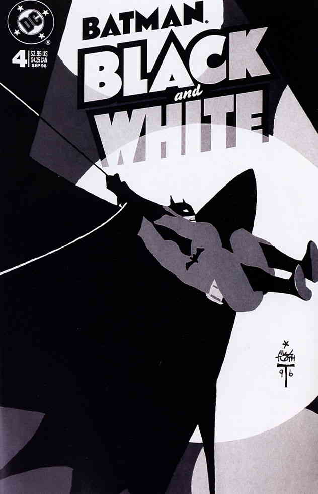 Item: Batman Black and White #4 | Publisher: DC | Cover Date: September 1996 | Writer: Brian Bolland, Jan Strnad, Archie Goodwin, Denny O’Neil, Katsuhiro Otomo, Mary Jo Duffy | Artist: Brian Bolland, Kevin Nowlan, Gary Gianni, Brian Stelfreeze, Katsuhiro Otomo | Cover Artist: Alex Toth | Appearances: Penguin | Storylines: An Innocent Guy; Monsters In The Closet; Heroes; Leavetaking; The Third Mask | Notes: Final Issue; B&w anthology | With Economy shipping, each additional comic ships for just 50 cents more to customers in the USA. This listing contains a stock photo and information from ComicBase™ and © Human Computing. The stock photo is for reference only. If you would like to see a photo of the actual item, please message us prior to purchasing.Seller Information