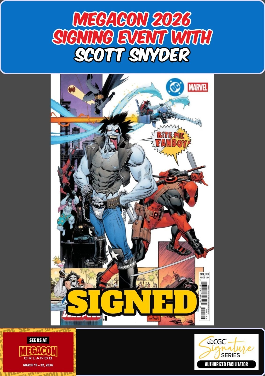 BATMAN DEADPOOL #1 SEAN MURPHY MEGACON 2026 SCOTT SNYDER SIGNED W/COA PRESALE NM