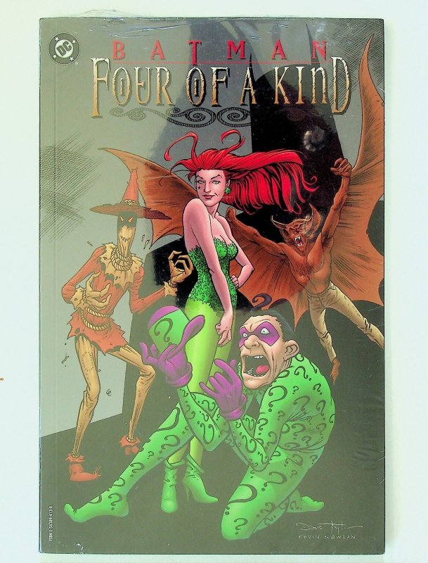 This is a trade paperback edition of "Batman: Four of a Kind" published by DC Comics. This graphic novel collects stories featuring four of Batman's most iconic adversaries: Poison Ivy, Scarecrow, Man-Bat, and The Riddler. It offers a compelling read for fans of the Caped Crusader and his rogues' gallery. This collected edition is identified as a Direct Sales format, as indicated on the back cover. This listing includes one (1) trade paperback book, still sealed in its original polybag.Verified Specifications:Publisher: DC ComicsSeries Title: BatmanStory Title: Four of a KindItem Type: Trade Paperback (TPB)Era: Modern AgeFormat: Direct EditionKey Features: Collected Edition, Multiple Villains, Graphic NovelIncluded Components: 1x Trade Paperback BookCountry/Region of Manufacture: USAUnit Quantity: 1Unit Type: BookUnit of Sale: Single UnitLanguage: EnglishBarcode: 761941212999ISBN: 1-56389-413-0Original Packaging: In polybagCover Price: $14.95 USA / $20.95 CANSeller Information