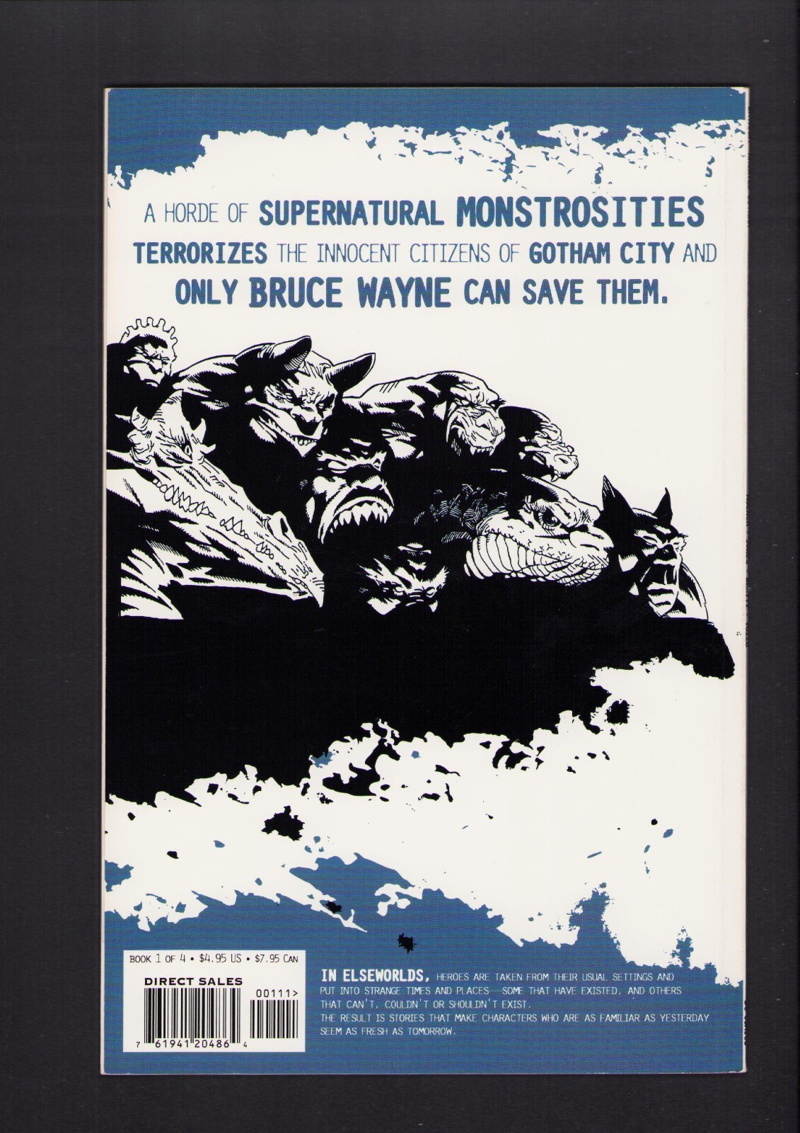 Grade: 9.2 Near Mint-Batman: Haunted Gotham Book #1-4 - FOUR PIECE LOT PRESTIGE TPB! (9.2) 2000Size: 7" x 10"This item was uploaded by __AG____.WE COMBINE SHIPPING!!! Either wait for us to send you an invoice after you commit to buy or, if it makes you pay right away, message us back and we'll refund the excess charge. Buy as many single comic books as you want for one low flat shipping rate in the United States! International will be charged exact according to size and weight. If you have any specific questions or requests, please ask us prior to ordering and we'll get back to you as soon as we can. If there are any problems with your order whatsoever, please message us before leaving feedback and we'll be happy to work with you to fix the situation! We ship worldwide, combine purchases, and charge exact shipping. The price may vary based on size, weight, and location. If you are automatically overcharged for shipping, message us and we'll be happy to revise the invoice or refund you the excess amount. If you have any questions regarding shipping, please message us. International Buyers - Please Note: Import duties, taxes, and charges are not included in the item price or shipping cost. These charges are the buyer's responsibility. Please check with your country's customs office to determine what these additional costs will be prior to bidding or buying. Payment can be made by PayPal and credit cards directly. 120,000+ items in total in my Hip store! Frequently Asked Questions: When are your operation hours?Our in office hours are Monday - Friday, 11 am - 8 pm. We are not open on weekends, so if you send us a request on Friday evening we won't get back to you until Monday afternoon. Please don't take it as us ignoring you! We will work on your request Monday and get back to you as soon as we can. Also, if you order from us on a Friday evening or Saturday morning we won't start processing your order until we open on Monday. That means on Monday it will be pulled and prepped for shipping, then picked up by the postman on Tuesday morning.When will you ship my item? The tracking hasn't moved.We realize you're eager to get your item, so if the tracking hasn't moved in a few days please don't be concerned. We give the postman a lot of packages daily, sometimes as many as 100, so he does not scan each item for us upon pickup as he says it would be too time consuming for him to do so. If you get a tracking number from us, that almost always means your item was picked up by the postman the next business day. The USPS is also imperfect. There are times when the tracking won't even show movement until it's in your area's regional distribution center. This is normal in our experience. Is the item pictured the exact one for sale?Yes! We don't use stock images and go through great lengths to scan or photograph everything we list. The item pictured is exactly what you should receive UNLESS it is a fixed price listing with multiple items available. Can you issue a COA? We can, upon request. Please make sure you leave us a note while checking out and shoot us a message immediately after requesting one, just to be sure. How do you grade?Grading is very subjective, but we are professionals with decades of grading experience between us who try the best we can to accurately describe the condition of the items we list. Anthony is an Overstreet Comic Book Price Guide Advisor Please see the grading chart below for a breakdown of how we grade: NOTE: We don't grade any raw books higher than 9.2, as once you go higher than that grading gets really subjective. If you buy a NM book from us, it may very well be higher than 9.2 but we play it safe and grade conservatively. 9.2 NM Near Mint 9.0 VF/NM Very Fine/Near Mint 8.5 VF+ Very Fine+ 8.0 VF Very Fine 7.5 VF- Very Fine- 7.0 FN/VF Fine/Very Fine 6.5 FN+ Fine+ 6.0 FN Fine 5.5 FN- Fine- 5.0 VG/FN Very Good/Fine 4.5 VG+ Very Good+ 4.0 VG Very Good 3.5 VG- Very Good- 3.0 GD/VG Good/Very Good 2.5 GD+ Good+ 2.0 GD Good 1.8 GD- Good- 1.5 FR/GD Fair/Good 1.0 FR Fair 0.5 PR PoorHow do you ship comics? We ship in rigid cardboard mailers to protect your comic book from the worst the mail system has to offer. Price varies based on the number of books you purchase, but we try to keep costs as low as we can and charge exact shipping. If it looks unusually high to you please send us a message and we'll be happy to double check for you. Do you combine shipping? Yes, of like items. Such as: several comics can fit in one cardboard mailer, as can more than one record. Multiple art pages can easily be combined because they are light and thin. Where combined shipping differs is with size and weight. For instance, two statues require a much bigger box. Same goes for CGCs, as the package gets bigger and heavier as you go. Do you ship well? I've had some bad experiences... You needn't worry; we are professionals who value your business and want your item to arrive safely as much as you do. I have been collecting for over 30 years. I send out items the way I would like to receive them. The tracking says my item is "OUT FOR DELIVERY" in New Jersey. Why is that?If the tracking indicates that the item is "OUT FOR DELIVERY" in NJ don't worry, it's just what the tracking says when it's carried over from the postman to the sorting center. This is normal for our Post Office and will not impact you receiving your item in a timely matter.What is the difference between a RUN and a LOT?Good question. A RUN will be a collection of consecutive issues with no breaks in between them. If it says RUN of #s 1 - 50 you will receive 50 consecutive comics. A LOT will be within a certain range, so a 50pc LOT will not contain consecutive books.I changed my mind after successfully winning the auction or fixed price listing, will you cancel the transaction? Please only bid or hit BUY IT NOW if you are willing to follow through and pay for the item, we will not cancel the transaction. As a seller, Hip penalizes us 