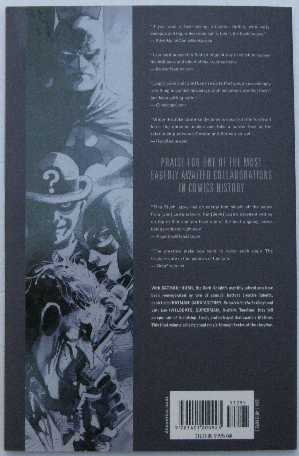 VFN condition (8.0). Sticker residue on back cover otherwise the condition would be NM (9.4). Softcover. No CD. Jeph Loeb story with Jim Lee art.Seller Information