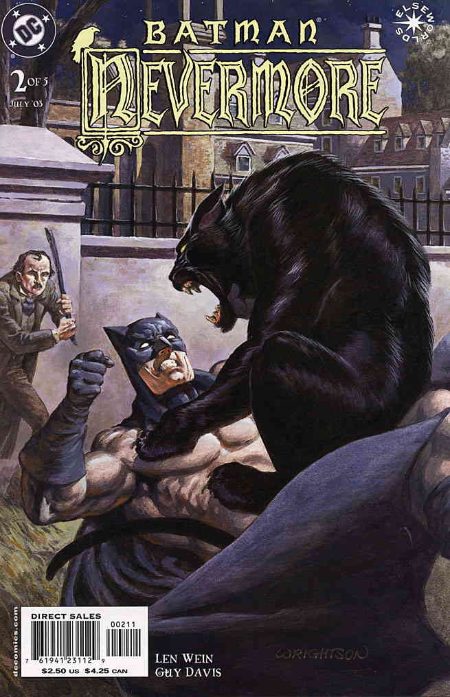 Item: Batman: Nevermore #2 | Publisher: DC | Cover Date: July 2003 | Writer: Len Wein | Artist: Guy Davis | Cover Artist: Bernie Wrightson | Storylines: …The Hideous Beast… | Notes: Painted cover; Elseworld story | With Economy shipping, each additional comic ships for just 50 cents more to customers in the USA. This listing contains a stock photo and information from ComicBase™ and © Human Computing. The stock photo is for reference only. If you would like to see a photo of the actual item, please message us prior to purchasing.Seller Information