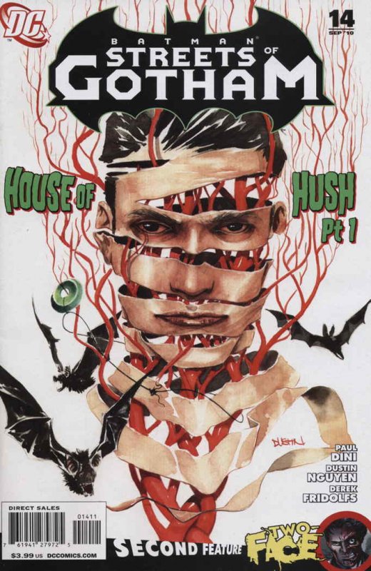 Item: Batman: Streets of Gotham #14 | Publisher: DC | Cover Date: September 2010 | Writer: Paul Dini, Ivan Brandon | Artist: Dustin Nguyen, Ramon F. Bachs | Cover Artist: Dustin Nguyen | Appearances: Alfred Pennyworth, Two-Face (Harvey Dent), Batman | Storylines: The House of Hush Prelude; Two-Face: The Long Way Down | Notes: Green Lantern: Emerald Warriors preview; Includes preview of Green Lantern: Emerald Warriors #1 | With Economy shipping, each additional comic ships for just 50 cents more to customers in the USA. This listing contains a stock photo and information from ComicBase™ and © Human Computing. The stock photo is for reference only. If you would like to see a photo of the actual item, please message us prior to purchasing.Seller Information