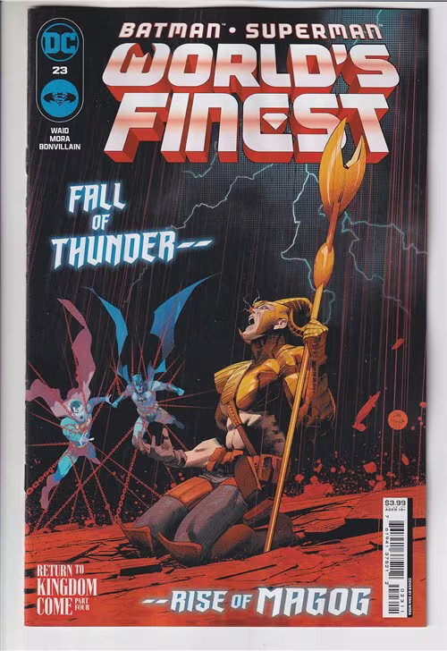 Grade: 9.2 Near Mint-Batman superman worlds finest (2022 dc) #23 cvr a dan mora item number: cxwh-r20365 the walls are closing in on the world's finest duo as boy thunder falls fully under the thrall of gog in the universe of kingdom come! Superman and batman race against the clock not only to keep boy thunder from becoming magog--but to save the multiverse itself!