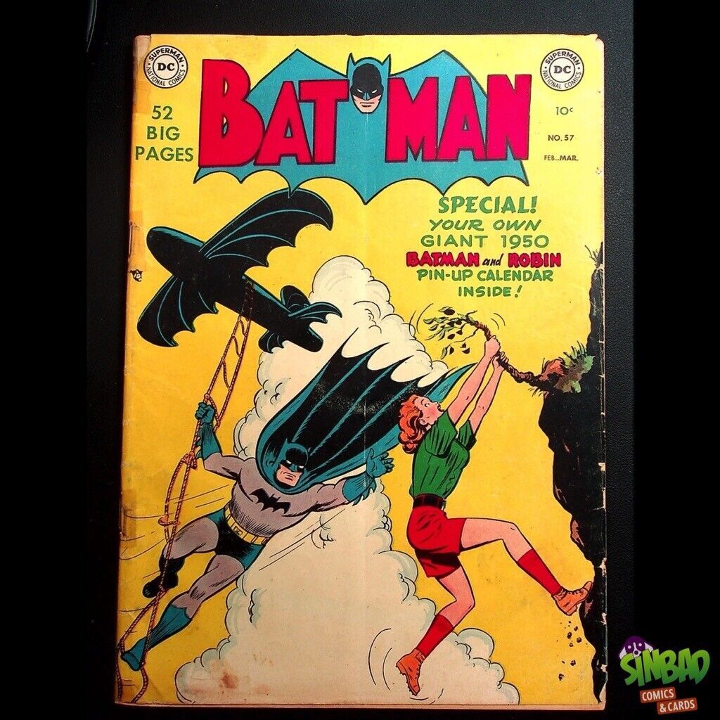Grade: 3.5 Very Good -Batman, Vol. 1 #57DC ComicsEstimated Grade/Condition: 3.5 Very Good - (Used) Notes:-few pieces of tape on cover (spine)Grades given on raw comics are estimates. We cannot guarantee that a grading company will assign any given grade. All comics are complete and attached unless otherwise noted. Please read the description and examine the photos. If you have any questions or would like additional photos, please feel free to contact us. We combine shipping!