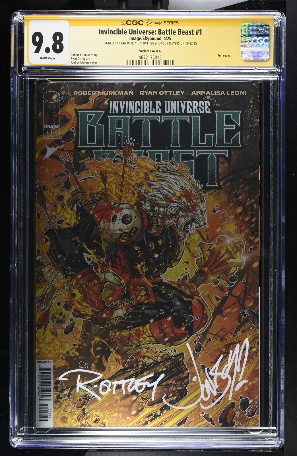 BATTLE BEAST #1 IMAGE 1:100 RYAN OTTLEY & JONBOY MEYERS 2X SIGNED CGC SS 9.8 NM