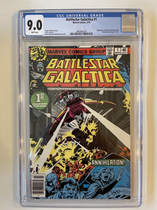 BATTLESTAR GALACTICA #1 CGC 9.0 - Newsstand - Marvel (1979) KEY TV AdaptationThe pictures above represent the exact item you are going to receive. They are NOT stock pictures. There are no missing pages, rips or cutouts.I am not a professional grader, so please use the pictures above to determine the grade for yourself. I have tried to grade as accurately as possible.