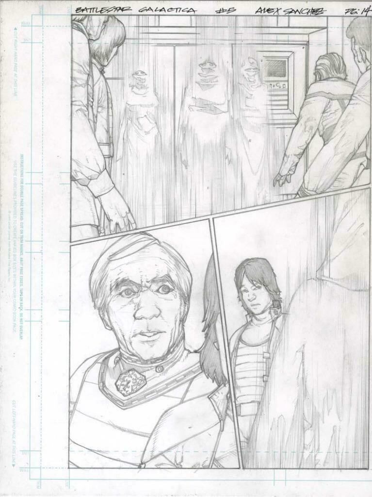 Battlestar Galactica #5 pg 14 Original Penciled art ALEX SANCHEZ Adama Starbuck