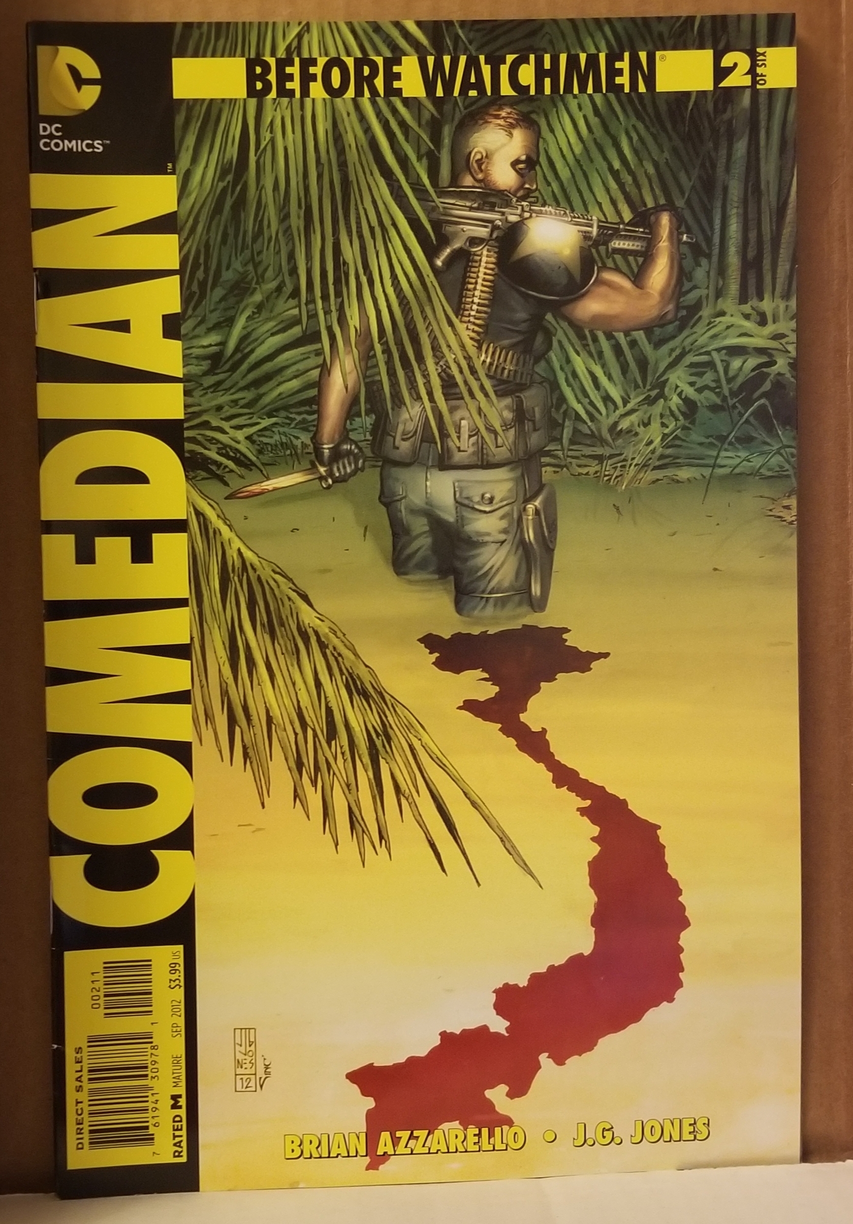 Before Watchmen: Comedian #2 by DC Comics copyright 2012. I have graded the comic book, using the Overstreet Grading Guide, at FINE/VERY FINE with the following defects: Light stress marks along the spine. The corners are starting to round. There is light yellowing of the pages.Seller Information