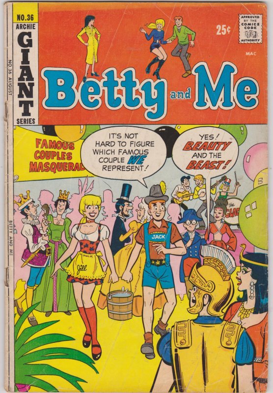 Betty and Me #36 by Archie Comics copyright 1971. I have graded the comic book, using the Overstreet Grading Guide, at GOOD with the following defects: Light stress marks along the spine The corners are rounded. There are folds in the upper and lower right corners. There are wrinkles and folds through out the cover. There is some yellowing of the pages.Seller Information