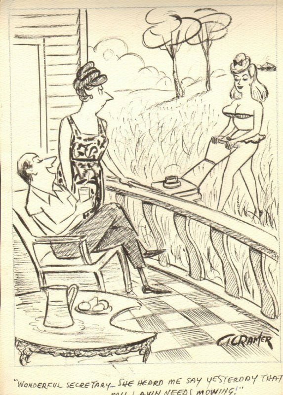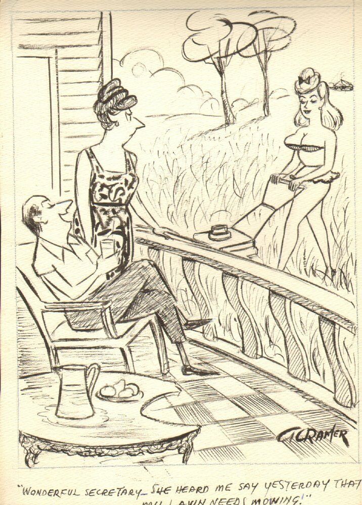 Bikini Babe Mowing the Lawn - 1966 Humorama art by Al Cramer 10 x 13 This item was uploaded by Bobby. If you have any specific questions or requests, please ask us prior to ordering and we'll get back to you as s ... Read More