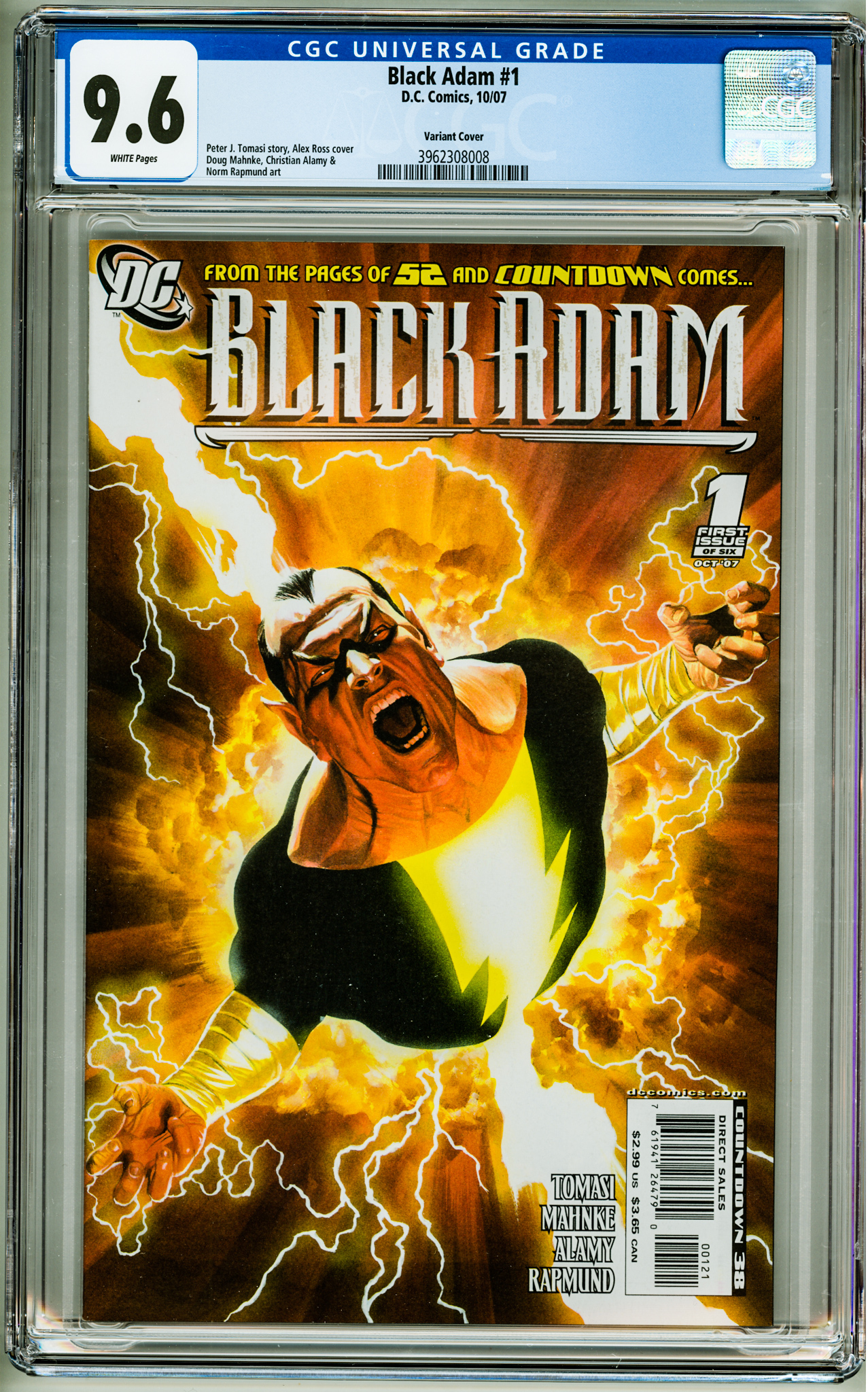 Black Adam #1 Variant Cover! CGC 9.6! White Pages!