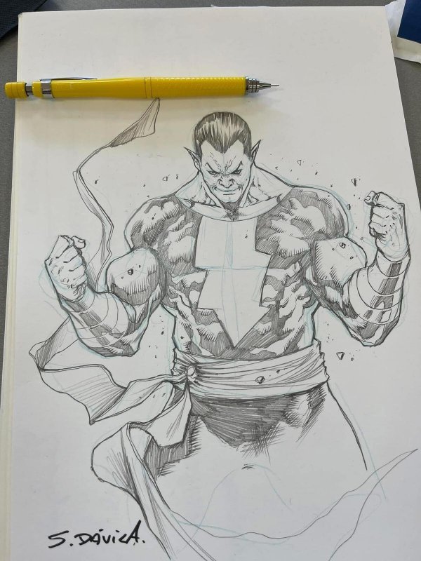 Black Adam Original Art by Sergio Dávila – DC Comics A4 Pencil Sketch Signed
