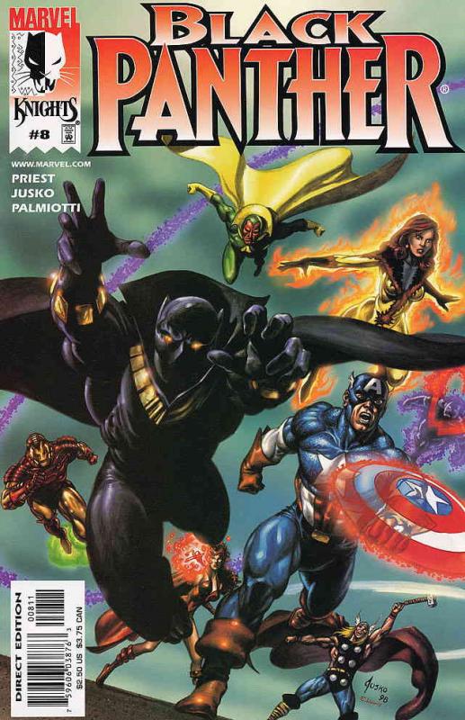Item: Black Panther (Vol. 2) #8 | Publisher: Marvel | Cover Date: June 1999 | Writer: Christopher Priest | Artist: Joe Jusko, Amanda Conner | Cover Artist: Joe Jusko | Appearances: Avengers, Iron Man, Thor, Captain ... Read More