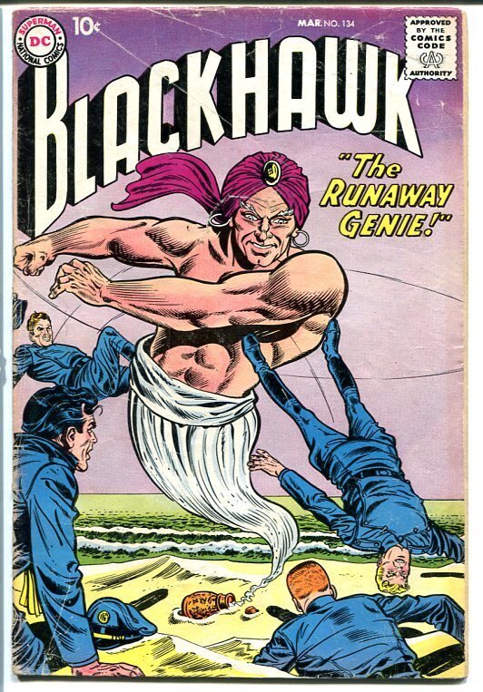 Grade: VG-Blackhawk #134 1959 dc runaway genie circus story! Vg- classic dc silver-age comic. Runaway genie. Circus story. Grade: vg- sku: con-dc-0189