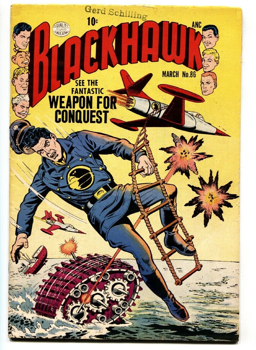 Blackhawk Issue: 86 / Year: 1955 Condition: VF--Blackhawk fights the Fantastic Weapon For Conquest -Anti-commie theme -Weapons issue -Name stamp on glossy cover. Publisher: QualitySku: DHV-06-233 Over 100,000 mail orders processed! Buy with confidence.