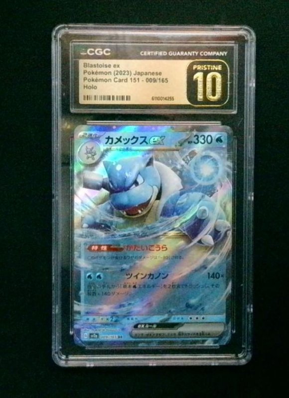 Blastoise ex Pokémon Card 151-009/165, Japanese edition Holo from the 2023 Pokémon ex set. Water-type Stage 2 Evolution Pokémon with 330 HP, featuring the Twin Cannon attack and Rapid-Fire Cannon ability. CGC Certif ... Read More