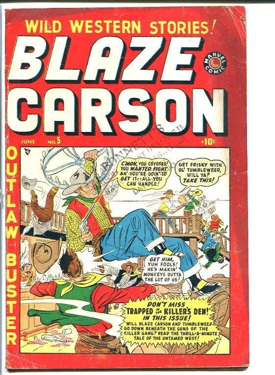BLAZE CARSON #5-MARVEL-WESTERN-1949-Golden Age G A very nice early Marvel western comic. Title: Blaze Carson Issue: 5 Grade: G SKU: CON-GA-0034