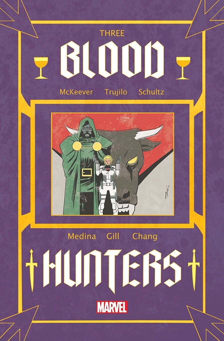 Grade: 9.2 Near Mint-Book Information: (W) Josh Trujillo, Sean McKeever (A) Robert Gill, Various (CA) Declan ShalveyDr. Doom has used his iron fists to keep his entire nation of Latveria safe from the vampire menace. But when a new threat arises elsewhere, Doom personally intervenes - with a vengeance! Elsewhere, in a remote farmhouse, a group of ordinary humans fight for survival against the bloodthirsty menace known as...Hellcow! (You didn't think we'd get through this event without a Hellcow story - did you?!). And in the ongoing saga, Dagger and Elsa Bloodstone must reluctantly team up with the deadly White Widow in order to survive the night. Witness the formation of the soon-to-be-legendary BLOOD HUNTERS!Rated T+ *Please note we put a generic grade of 9.2 VF/NM on all of our listings of comics but most are in better condition with very few being worse.**We use the Stock Photo provided by the publisher, due to listing the items before release date. A few times the publisher will make small changes to the image before shipping them, including but not limited to adding trade dress, changing colors of the title, etc. We try and replace the image but do not always see the change. Please be aware.*Terms: We are happy to combine shipping on domestic shipments. If you purchase more than one item, and the following rate does not properly apply, please request a combined shipping invoice before making payment.We DO NOT ship media mail for comics, because those shipments are legally not supposed to contain advertising and are subject to inspection. Media mail shipments also take longer to arrive, so with our First Class or Priority Mail shipment you will get your books in a timely manner and you can trust our integrity in following legal guidelines. We also take special care to package items securely, unlike others who are more concerned with expediency (and skirting shipping rules).If you are and international bidder:We use Hip's international shipping program. Information about this program and to see if your country qualifies check here: