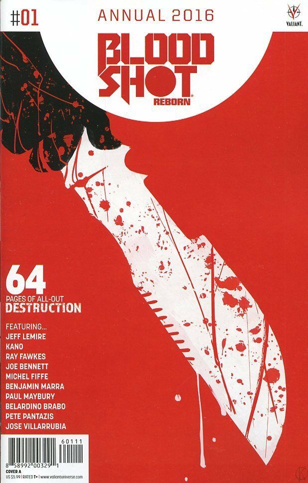 ATTENTION: Be sure to check out my OTHER ITEMS for more great deals! VISIT MY Hip STORE TO SEE OUR HUGE SELECTION CLICK HERE Bloodshot Reborn Annual 2016 #1 Cover A Comic Book 2016 - Valiant : NOTE: All Comics come with Bag and board to keep it protected!(W) Jeff Lemire & Various (A) Kano & Various (CA) KanoAs THE ANALOG MAN takes an act break…Valiant's indestructible commandois gearing up for Valiant's first-ever annual with a 64-page bloodbathtouring Bloodshot's past, present, and future! First: Terror doesn'twait for Friday at Camp Silver Lake in an extra-sized tale ofsummertime mayhem from New York Times best-selling writer Jeff Lemireand Valiant superstar Kano! A masked menace has stalked this camp foryears, but what happens when one unstoppable killing machine comes upagainst another? Bloodshot is about to bring his bloody brand ofjustice to the quiet shores of Silver Lake to take on America's mostnotorious slasher! Then: Jeff Lemire presents a very specialBloodsquirt solo adventure, plus all-new stories from acclaimedcreators Ray Fawkes (Batman Eternal), Michel Fiffe (Copra), BenjaminMarra (Strange Tales), Paul Maybury (Sovreign), and more!Condition:NEWWe Do Combine Shipping, Bid on More, Save More! Simply bid on your items and send a Request Total notice and we'll forward the new total. Add Me to Your Favorite Sellers ABOUT US:Killen Enterprises - Sells Lot of Great Items!We are a Game Store, Computer Store, and Toy & Collectible Store all in 1!Check out our Other Items for More Great Deals!CLICK HERE to view our other items* NEW ITEMS ADDED DAILY* Payment Information: We accept the follow payment types: We can also accept your credit card and other payments if you are picking the item up in person! Pay me securely with any major credit card through PayPal! All other Information: We do our best to represent the items to the best of our knowledge. You know everything we do, please do not assume anything, all items are AS-IS. Feel Free to ask us any questions, we'll do our best to answer them all. Also, be sure to bid the highest you want to bid, don't lose your item! Check out our other items on Hip we are constantly adding items! View more great itemsSeller Information