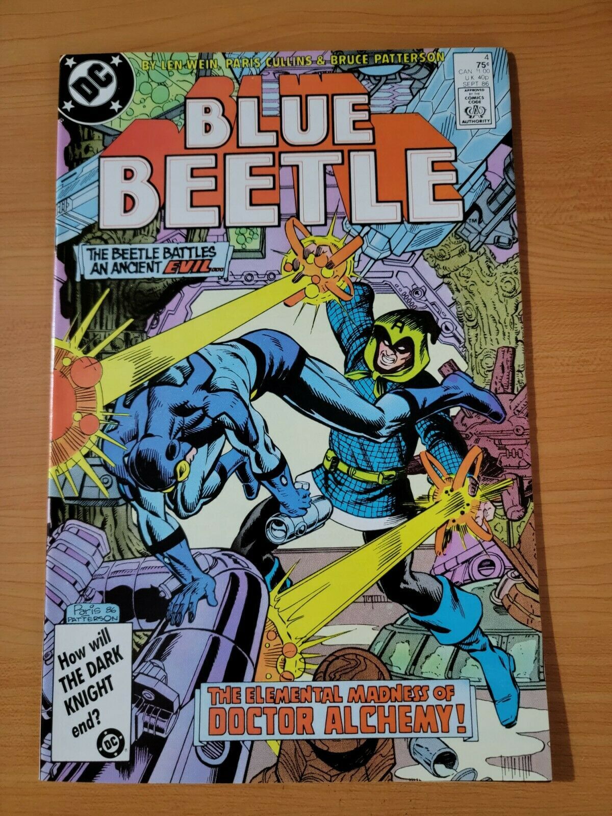 Item DescriptionBlue Beetle #4 Direct Market EditionPublisher: DC ComicsPublished: 1986Item Grade/ConditionGrade: NEAR MINTFor more information about this grade and other grades, please see our grading standards.~ WE TAKE HIGH DEFINITION PICTURES OF OUR COMICS ~ For more detail use the ZOOM Function and check them out yourself! ~Shipping Info:United States: Comic Book & Magazine Orders of all sizes, big and small ship for a flat Single Shipping ChargeInternational: We use Calculated Shipping! ~ This insures that you get the LOWEST POSSIBLE COST! ~ Please give us one business day to calculate large orders! The Calculator for Hip is pretty bad for international, contact us if you are looking to order multiple books so we can help you make it work on the back end! As a courtesy to our customers, we insure all orders over 50$ US ~ YOU DONT PAY EXTRA!Delivery TimeWe process and ship all orders within 1 business days. Once shipped, estimated U.S. transit time is 2-10 business days; international 14-21 business days.(Orders placed on Friday afternoon as well as weekends will be shipped the next business day as we do not ship on the weekends).PackingOmnomax Traders has mastered packing to ensure our orders of a "damage-free transport."Using the following methods, we have seen a nearly perfect 99% success rate for undamaged comics!Here is how our orders ship:All Orders :Bagged AND Boarded, ALWAYS NO EXCEPTIONS!Shipped in a Gemini Comic Mailer OR Tightly secured between 4x stiff pieces of corrugated cardboard (double Sandwiched)Sealed on all 4 sides with strong packing tape (Items doesn't even wiggle).:*Now this method is nearly perfect! however we have seen damage happen to items ( only once or twice a year ) ~ this is often due to bad handling by the postal service. Always remember to contact us if this happens! we are committed to quality service!*Offers History
