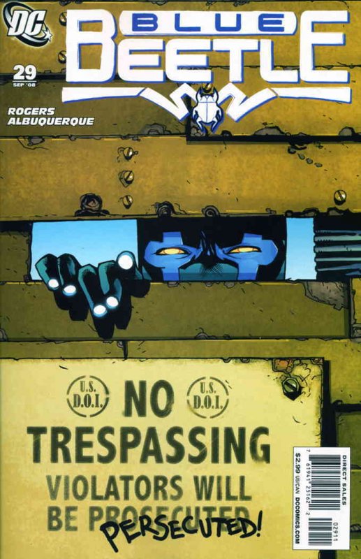 Item: Blue Beetle, The (4th Series) #29 | Publisher: DC | Cover Date: September 2008 | Writer: Matthew Sturges | Artist: Rafael Albuquerque | Cover Artist: Rafael Albuquerque | Storylines: Boundaries, Part 1; Crossi ... Read More