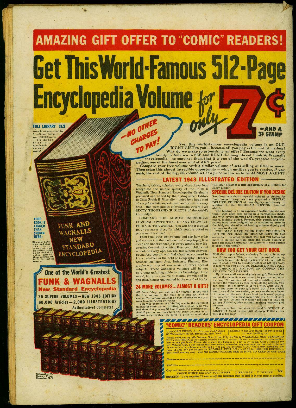 Last Sub-Zero. Sgt Spook, Dick Cole, Blue Bolt, Fearless Fellers story has a cool splash panel with puppet of UNCLE SAM beating puppets of Hitler and Hirohito with a WAR STAMPS sign. Patriotic WW II era issue. Store stamp on cover.