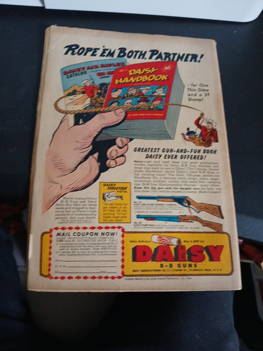 Grade: 3.5 Very Good-add 3 items to your shopping cart and get 5$ off each when you pay for them as one order ##OFFER DOES NOT INCLUDE ITEMS WITH BEST OFFERS OR ONES WHERE I HAVE SENT YOU AN OFFER### Sadly it grades low as it has bends tears water damage tearing around the moderately rusty staples foxing at the edges a tiny hole through the first few pages half inch spine split at the top and other defects. I would call it around a 3.5 vg- out of 10 condition. See pics and judge for yourself before purchasing as grading is subjective. While we accept returns we do not accept returns for defects that are listed in the description or clearly visible in the pictures regardless of how big or small they are. It is your responsibility as a customer to review any information or pictures given before purchase. The grading is only our opinion and we are not responsible if you choose to have it professionally graded after it leaves our possession or interprit the grading scale differently. We conform to the Overstreet grading guide standards as they have been the gold standard for more than 50 years in the comics industry and are more strict and accurate than most professional graders as they base their grading off of overstreets original grading system. #####add 3 items to your shopping cart and get 5$ off each when you pay for them as one order ##OFFER DOES NOT INCLUDE BEST OFFERS### also as Hip now requires us to click a button that says condition and it auto applies information to our listings the information on the "condition" section should be ignored as it does not conform to comic book grading standards and is only included because Hip requires it even though it is extremely inaccurate! Check our hand typed notes on each item in the description section where we list defects and grade for each individual comic for accurate grading information. We have been selling for more than 20 years with thousands of items! Most of our Golden Age is listed as the lowest Buy It Now price on Hip and often the only copies available! We have more than 6,000 good feedback buy with confidence.