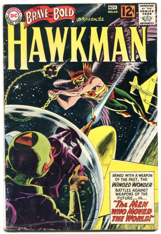 Grade: FRThe Brave and the Bold #44 1962- Hawkman- Black cover- Silver Age reading copy Great issue of this classic comic. Two small pieces of tape inside front cover. Water stained, rusty staples. Reading copy. Grade: FR SKU: U2-50-289
