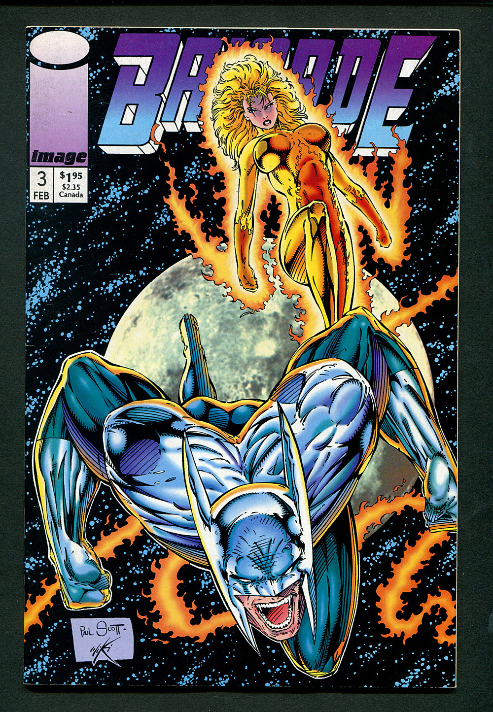 * 1st appearance of Birds of Prey. Includes trading cards of Seahawk/Coldsnap & Kayo; "Battlefront" by Marat Mychaels (plot & art) & Eric Stephenson (script); Cover by Paul Scott; Battlezone, Coldsnap, Seahawk, Atlas, Thermal, Kayo, Stasis, The Factor, Birds of Prey app; Pin-up of Brigade