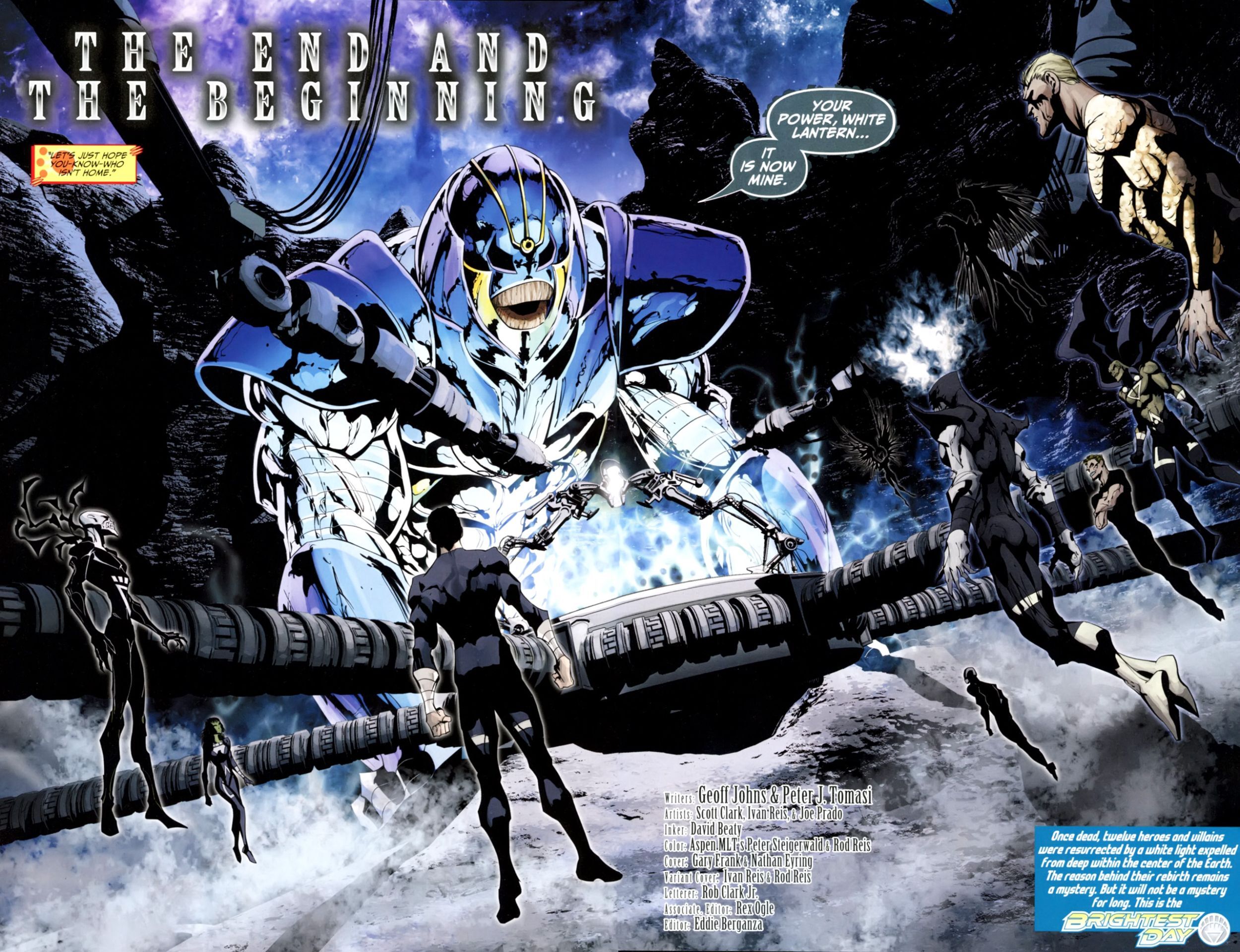 As the end of BRIGHTEST DAY approaches, our returned heroes and villains begin converging in one area as the ultimate protector reveals itself against the ultimate menace!