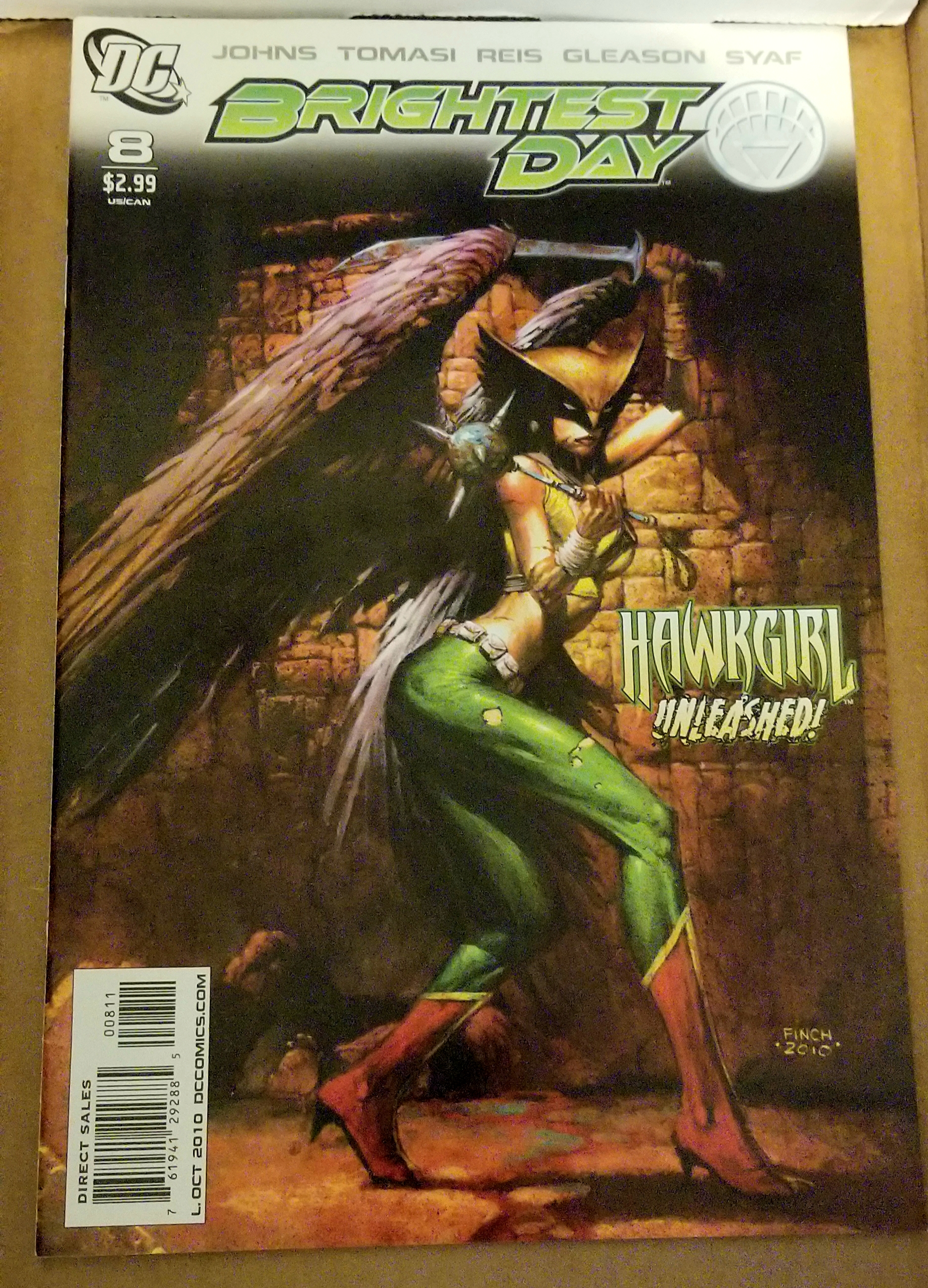 Brightest Day #8 by DC Comics copyright 2010. I have graded the comic book, using the Overstreet Grading Guide, at FINE+ with the following defects: Light stress marks along the spine . The corners are rounded. There is yellowing of the pages.Seller Information