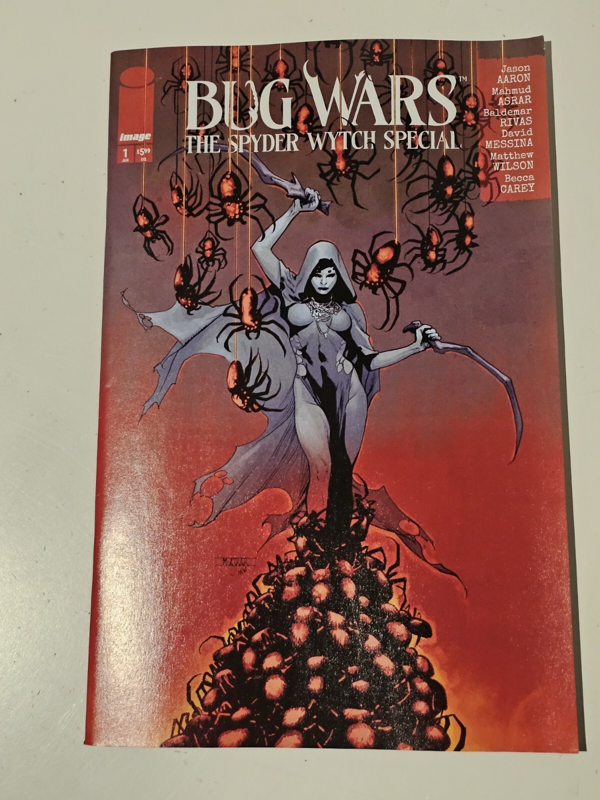 The Bug Wars The Spyder Wytch Special is a one-shot comic book cover featuring the character Bug from the Image Comics series. The cover art was done by artist Mahmud Asrar and is part of the US Comics tradition. This special edition comic book is a unique addition to any comic book collection, showcasing a rare and intriguing storyline that will surely captivate readers.
