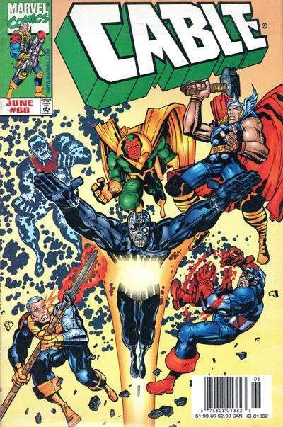 Item: Cable #68 (Newsstand) | Publisher: Marvel | Cover Date: June 1999 | Writer: Joe Casey | Artist: Jos? Ladr÷nn | Cover Artist: Jos? Ladr÷nn | Appearances: Avengers, Wonder Man, Vision, Thor, Captain America, Iro ... Read More