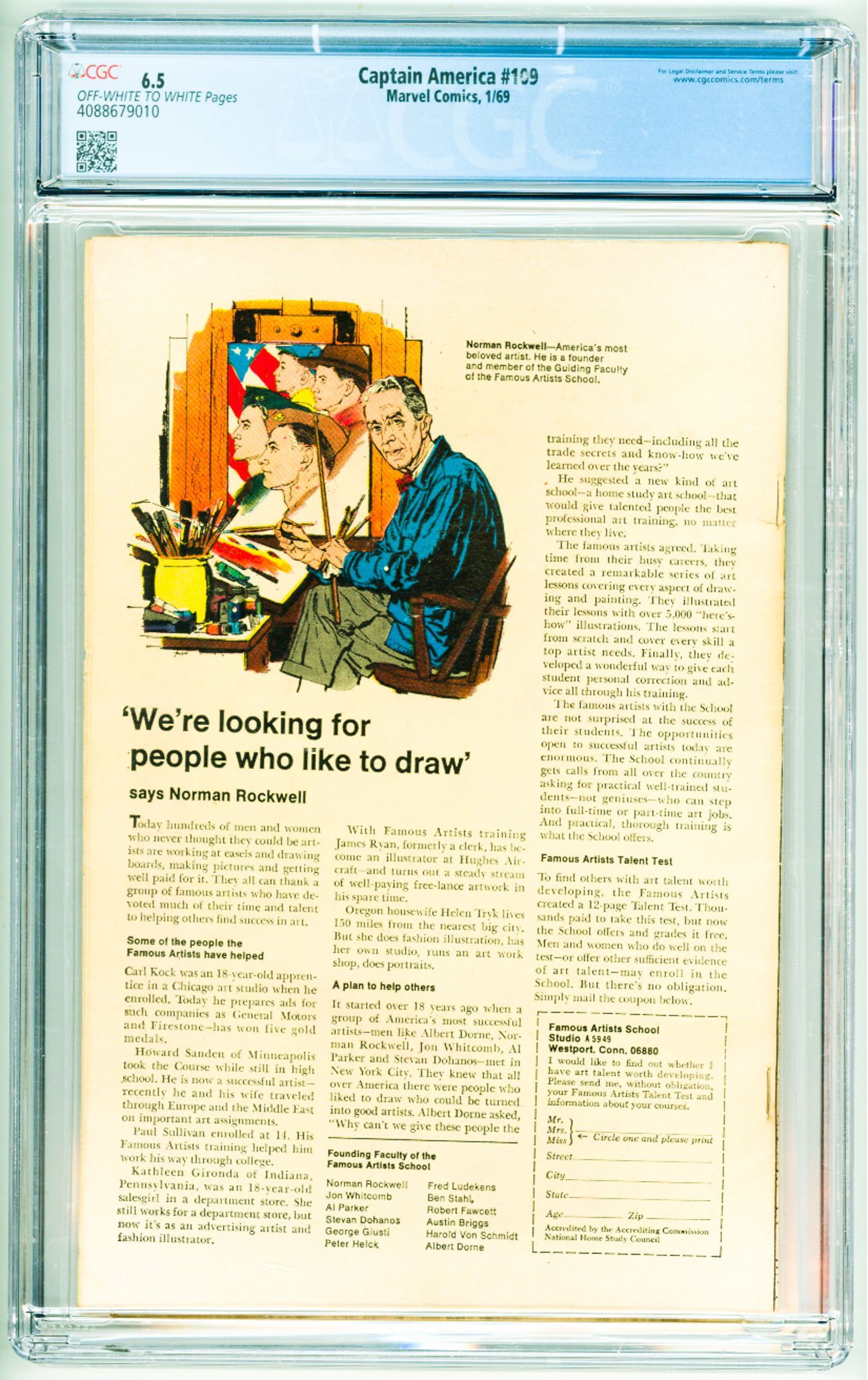Captain America #109 (1969) CGC 6.5! OWW Pages!